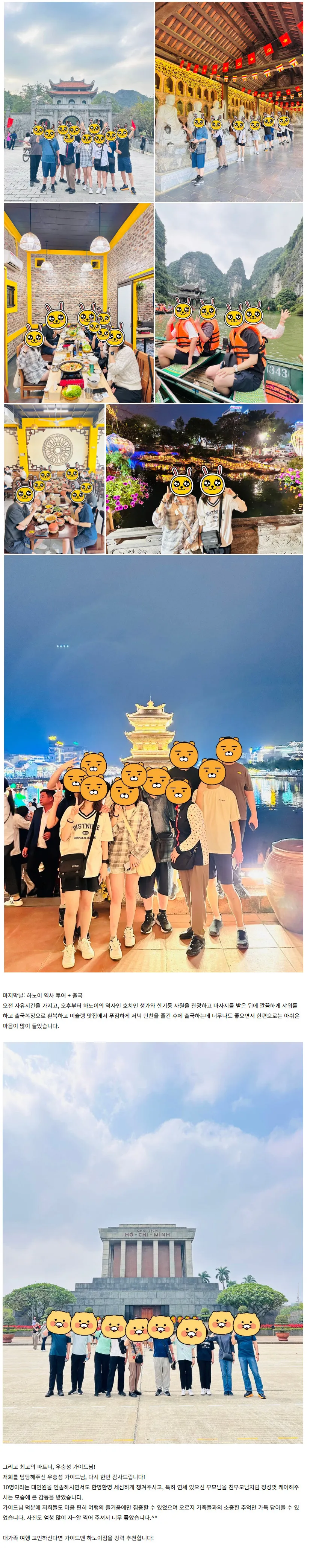 하하팩(하노이+하롱+닌빈) 4박6일 10명 대가족여행 (우충성 가이드님 짱이에요^^)