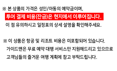 ※ 모든 일정은 현지 사정 및 기상 상황에 따라 변동될 수 있습니다.